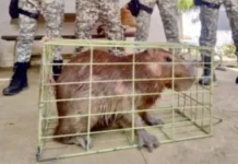 Capivara foi resgatada pelo Grupo de Apoio ao Meio Ambiente (Gama), que integra a Guarda Municipal (GM) de Vitória da Conquista Crédito: Divulgação