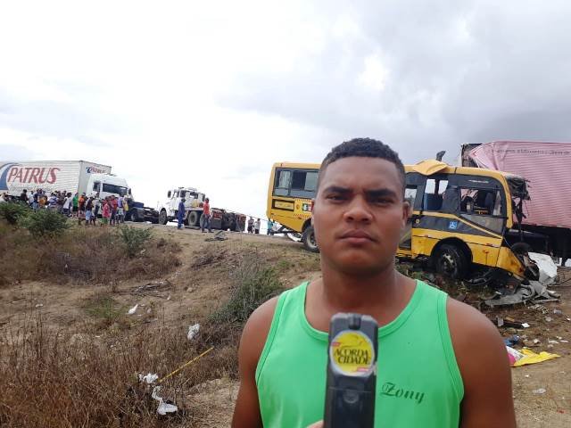 Em entrevista ao Acorda Cidade, ele relatou que estava sentado em frente à casa da mãe dele quando houve a colisão frontal entre um ônibus escolar da cidade de Euclides da Cunha e uma carreta. Cinco pessoas morreram e mais de 30 ficaram feridas. (Veja detalhes aqui)