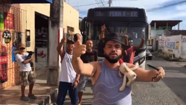 Na tarde de terça-feira (8), ele reuniu amigos e moradores do Conjunto Feira X, parou um ônibus que rodava no local e o grupo cantou e dançou a paródia com o objetivo de protestar.