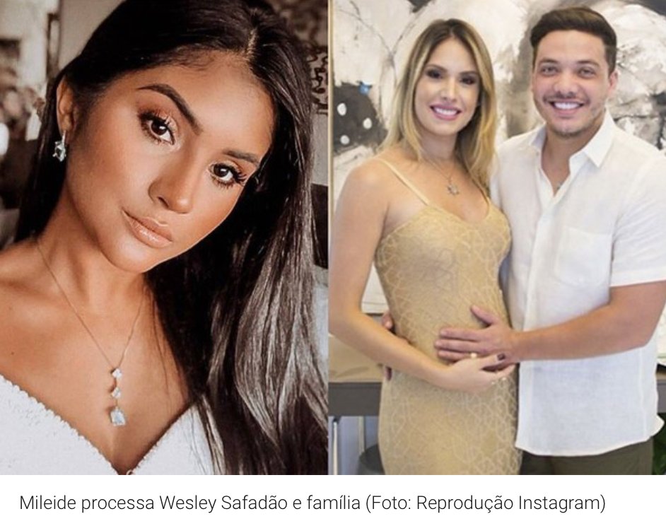 São dois processos: um por calúnia, injúria e difamação e outro que pede uma indenização de R$ 900 mil por danos morais. Uma das solicitações é que Wesley e Thyane se abstenham de falar o nome dela e do filho em redes sociais, sob pena de multa diária. As ações tramitam na Comarca de Fortaleza, no Ceará. Olha só: