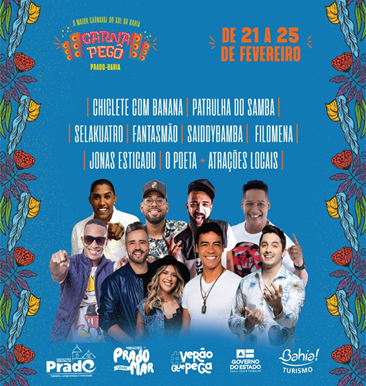 EntretenimentoEventosNotícias do Estado Prefeitura de Prado divulga as atrações do Carnaval By Portal do Recôncavo - 20 de janeiro de 2020 0 219 Compartilhar no Facebook Tweet on Twitter A Prefeitura de prado, por meio do site oficial, divulgou ontem a grade de atrações do Carnaval 2020. Confira abaixo:
