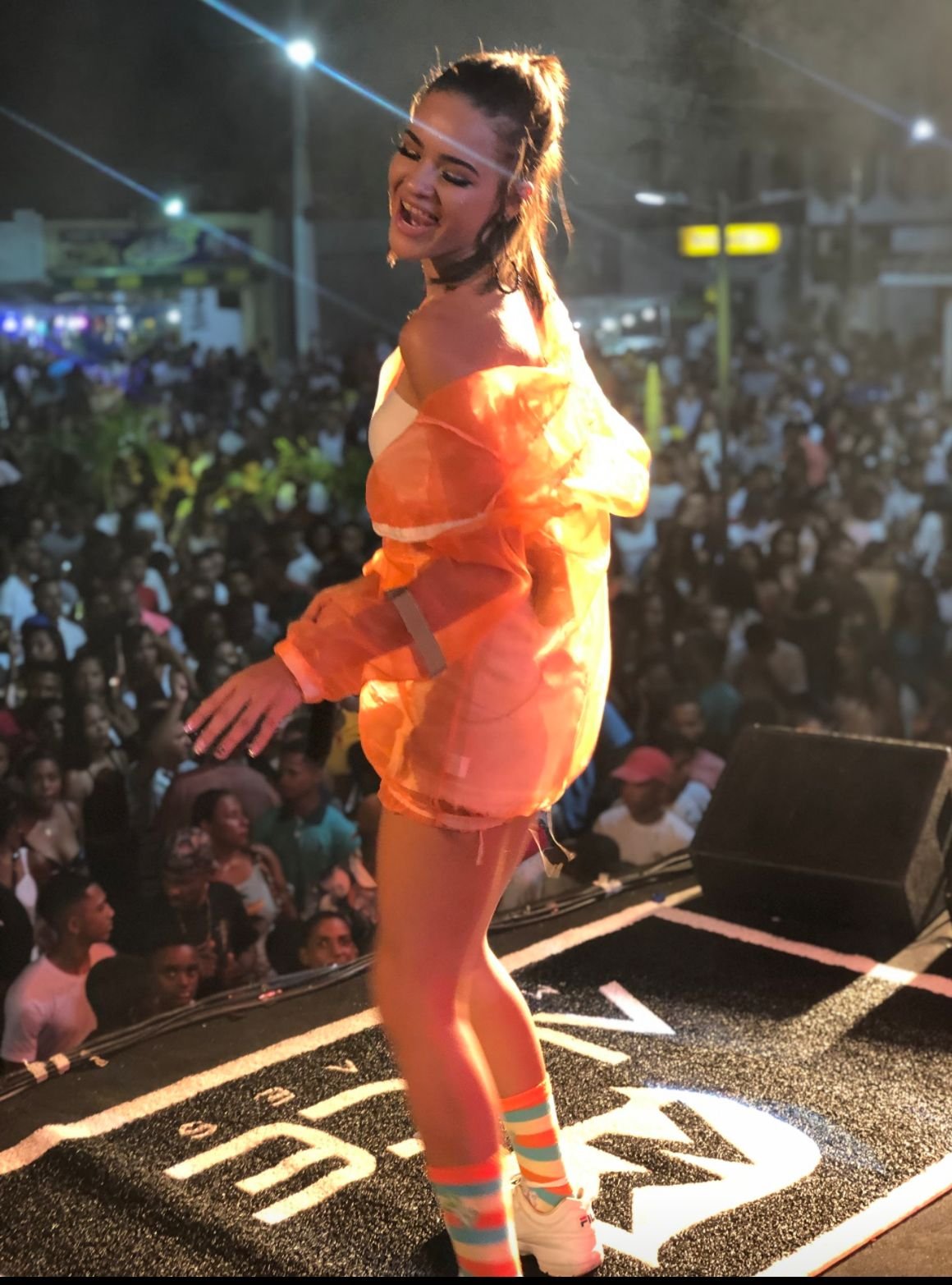 A localidade cantou e dançou muito com a apresentação da artista em sua primeira apresentação na localidade.