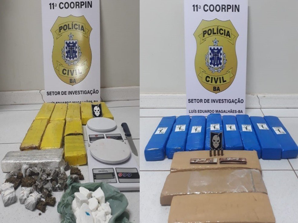 Seis pessoas foram presas suspeita de tráfico de drogas na cidade de Luís Eduardo Magalhães, a 965 km da capital baiana. Além dos suspeitos, foram apreendidos 15,4 kg em tabletes de maconha e 180 g de cocaína.