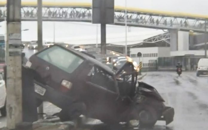 Um carro bateu em um poste localizado na Avenida Santos Dumont, em Lauro de Freitas, região metropolitana de Salvador, na madrugada desta segunda-feira (24). O acidente ocorreu no final da avenida, sentido Salvador.