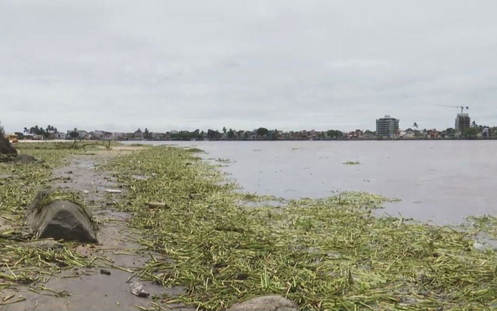 Plantas conhecidas como baronesas tomaram conta das praias de Ilhéus, no sul da Bahia, após o temporal que atingiu a cidade esta semana. A chuva começou no domingo (1º) em diversas cidades da região, e nesta quinta-feira (5), apesar do céu nublado e mau tempo, o volume de chuva está diminuindo.