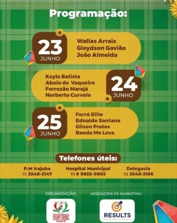 Irajuba divulga a grade do São João de 2022. Confira o que irá rolar nesses 03 dias de festa: