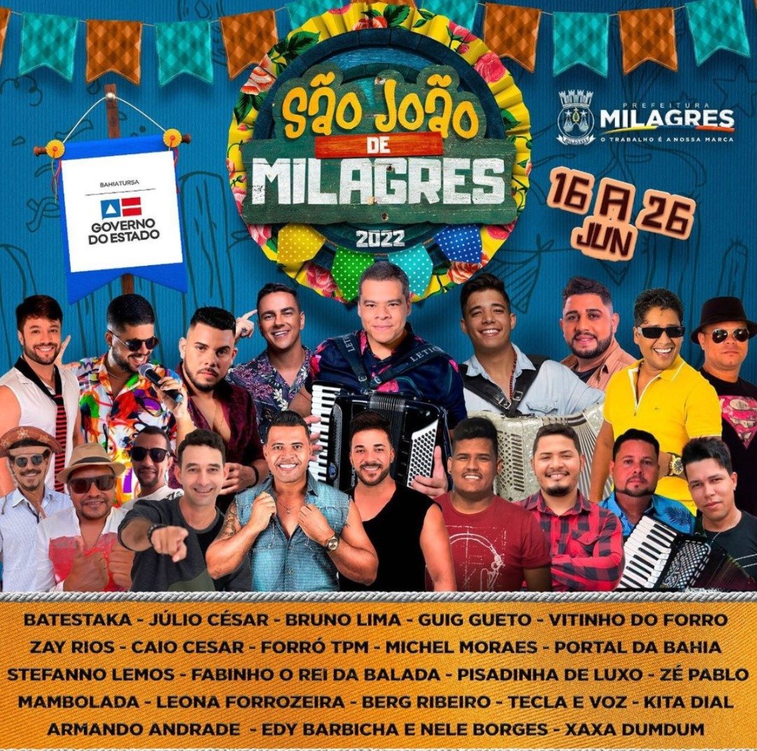 Nessa manhã, foi divulgada a tão esperada grade do São João de 2022 de Milagres. A expectativa de todos é muito alta e com a divulgação da grade, só fez com que ficasse ainda maior. Confira que vai passar nesses dias de festa: