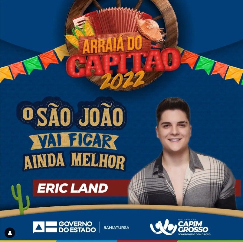 A prefeitura de Capim Grosso anunciou mais uma atração para o Arraiá do Capitão 2022.