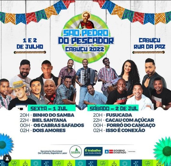 A Prefeitura de Saubara confirmou através da Secretaria de Cultura a realização do São Pedro do Pescador 2022.