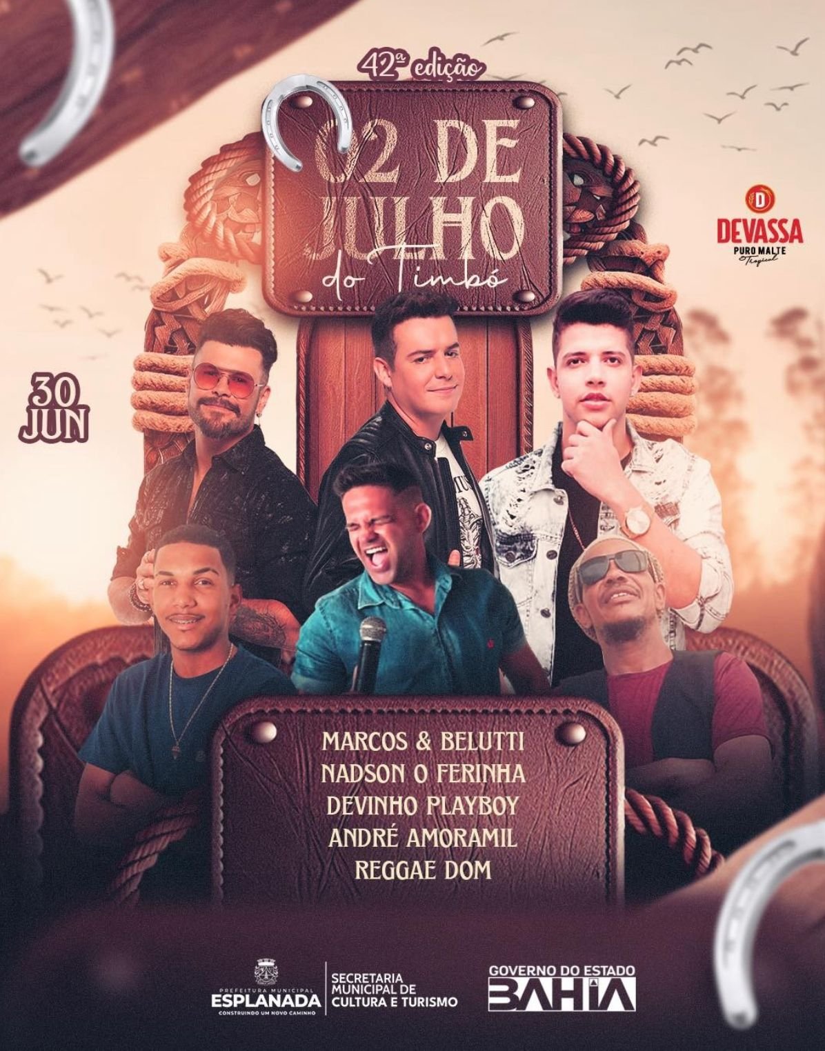 A Prefeitura de Esplanada anunciou a realização de mais uma edição da festa de 2 de Julho do Timbó. O evento que alcança a sua 42ª Edição em 2022 será realizado entre o dia 29/06 e o dia 02/07 e contará com uma extensa programação que envolve corrida de jegue, corrida de saco, quebra pote e diversas outras competições. Para animar ainda mais o evento, estão programados diversos shows de artistas nacionais e locais. Confira a programação abaixo: