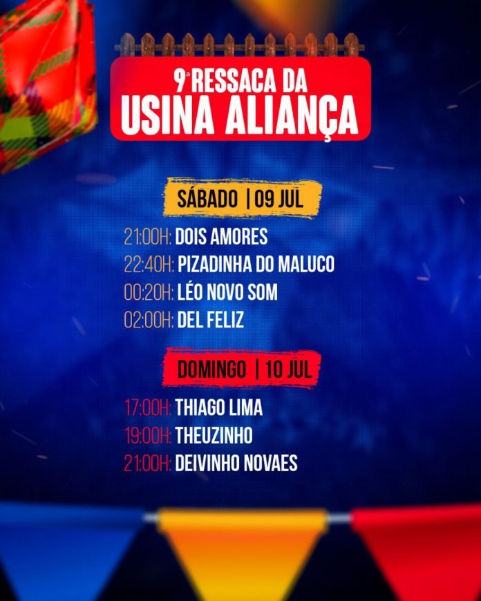 Como já é tradição, esse ano vai rolar a nona edição da Ressaca da Usina da Aliança, que terá muita alegria e animação da população e os shows: