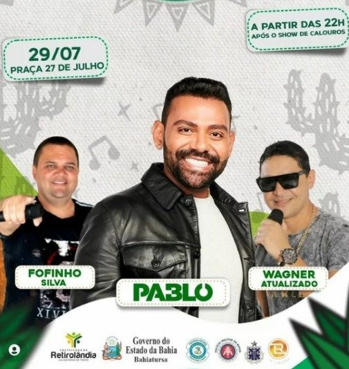 A cidade de Retirolândia se prepara para celebrar mais um festejo, a festa que foi divulgada a pouco tempo, está sendo bastante aguardada, prometendo muita animação, música e dança para os retirolandenses e visitantes, no dia 29 de Julho de 2022 a cidade receberá as atrações Fofinho Silva, Wagner Atualizado e destacando a noite com Pablo que prometem animar o público, uma programação imperdível.