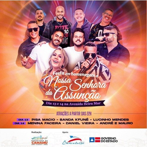 Após dois anos sem as festividades, a prefeitura municipal de Camamu divulgou as atrações da Festa de Nossa Senhora da Assunção.