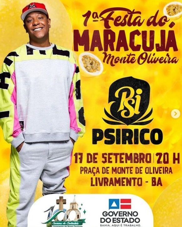 A primeira edição da Festa do Maracujá de Monte Oliveira em Livramento de Nossa Senhora vai acontecer no dia 17 de setembro de 2022 e já confirmou a presença de uma grande atração.