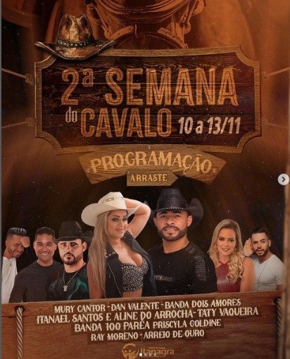 A semana do cavalo é um evento que faz parte do projeto de resgate da cultura local, que vem sendo desenvolvido pela gestão do prefeito Marcus Sarmento, centenas de cavaleiros e amazonas de toda região visitarão a cidade nesse período. O que fortalece ainda mais o comércio local.