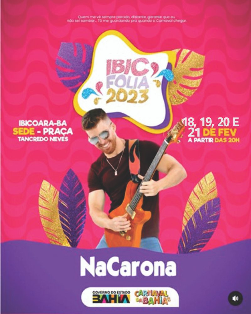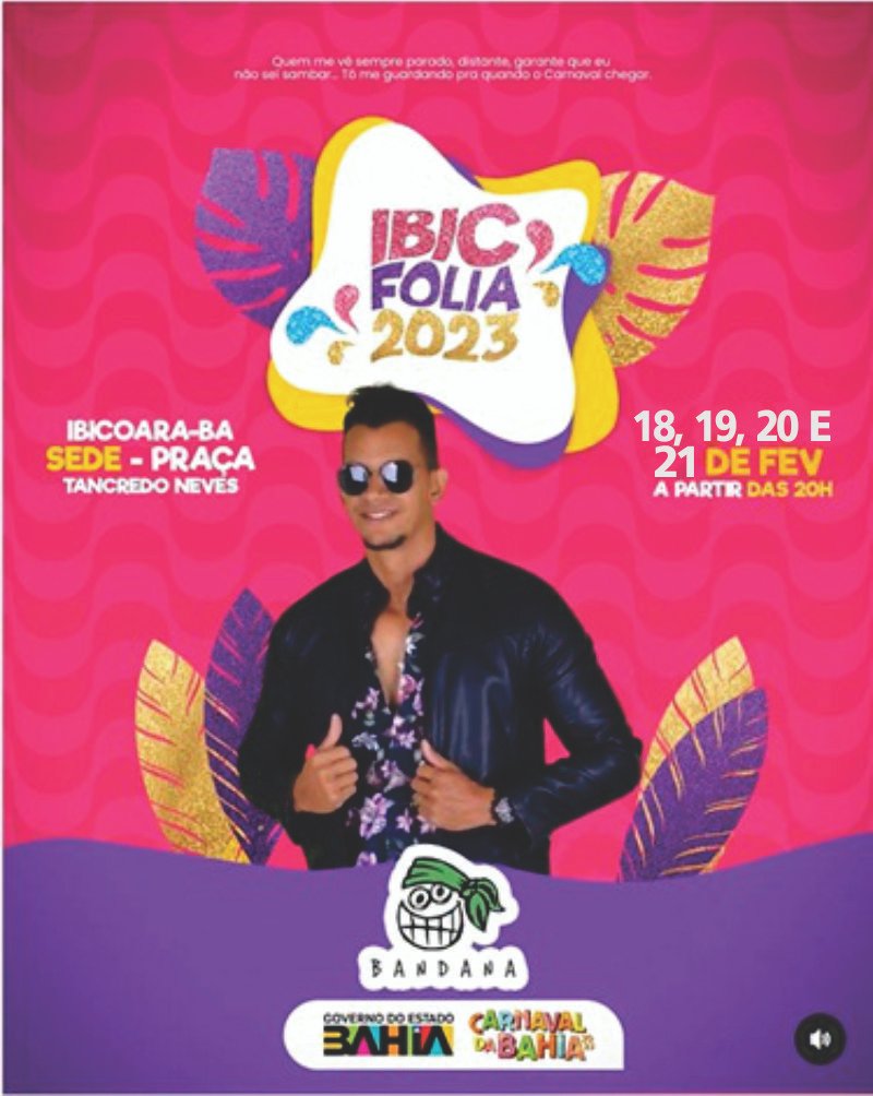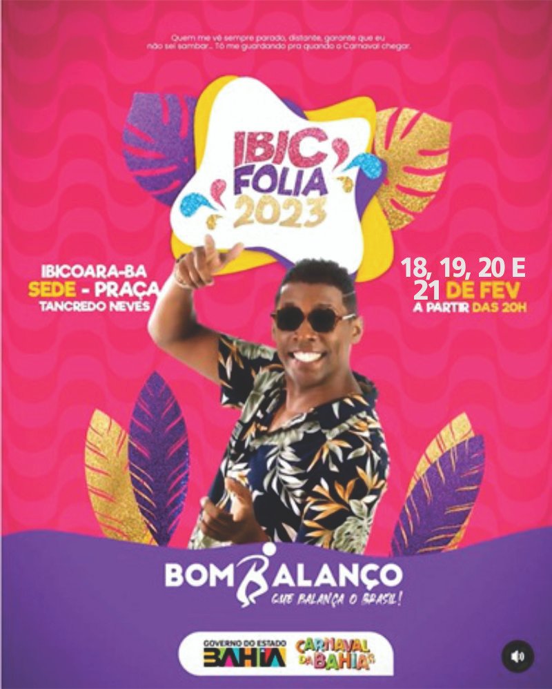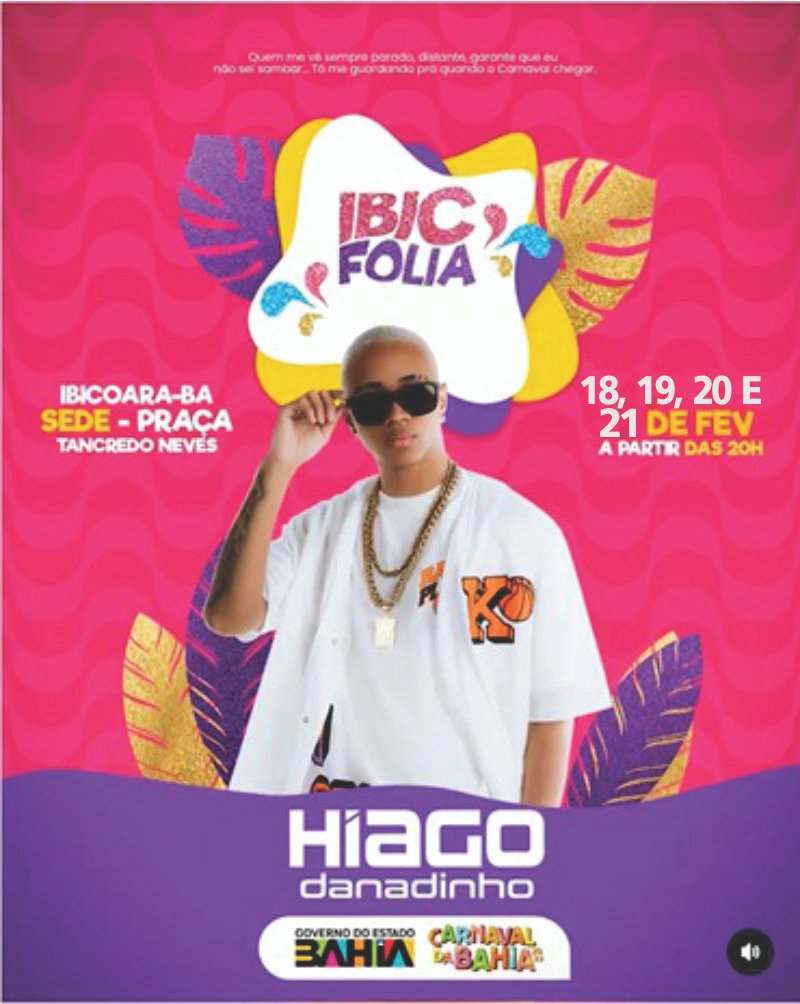 Dentre os dias 18, 19, 20 e 21 de Fevereiro, acontecerá o Carnaval de IBICOARA. Um dos mais belos cartões postais do Brasil, a cidade que é conhecida por seus encantos e belezas naturais, irá comemorar a folia de momo em grande estilo. Artístas como Hiago Danadinho, Bom Balanço, Na Carona e Bandana serão atrações da festa.