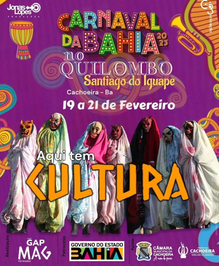 O evento conta com o apoio da Câmara de Vereadores e Prefeitura de Cachoeira juntamente com o Governo do Estado da Bahia.