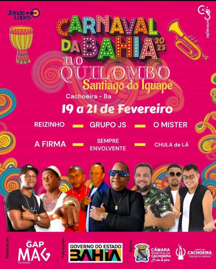 O carnaval do distrito de Santiago do Iguape, no município de Cachoeira, na Bahia,  ocorrerá neste mês, entre 19 e 21 de fevereiro. A festa contará com vários artistas, dentre eles: Reizinho, Grupo JS, O Mister, A Firma, Sempre Envolvente e  Chula da Lá entre outros.