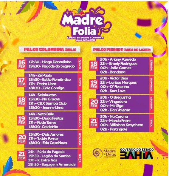 Os Palcos COLOMBINA E PIERROT, terá no próximo dia 18/02 sábado uma grade de atrações que ninguém vai ficar parado.