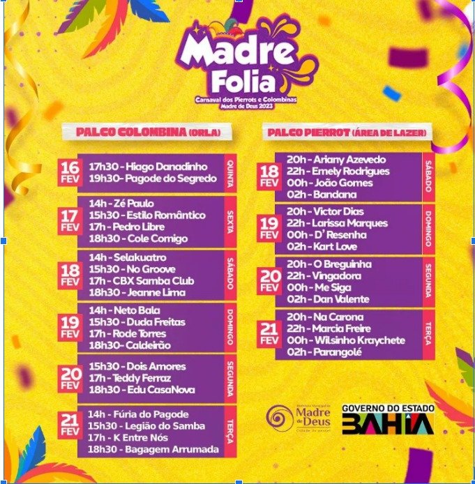 Os Palcos COLOMBINA E PIERROT, terá no próximo dia 19/02 domingo uma grade de atrações que ninguém vai ficar parado.