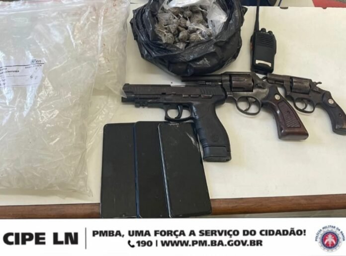 Na ação, os militares conseguiram apreender 1 pistola, 1 revólver calibre 32, 1 revólver calibre 38, 185 porções de maconha, 2.000 embalagens para armazenamento de drogas, 1 rádio comunicador e 3 aparelhos celulares.