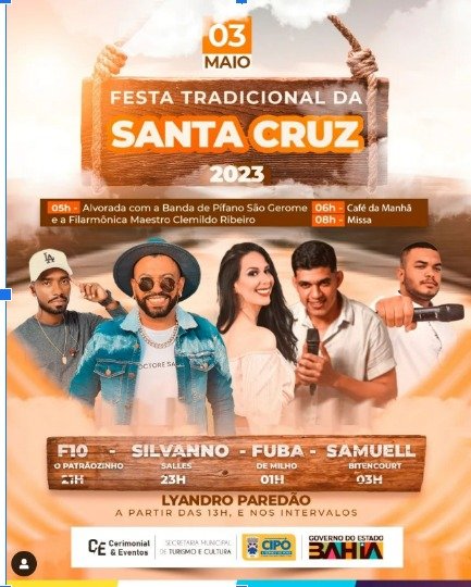 A Festa Tradicional de Santa Cruz, esse ano está com uma super programação e ninguém vai ficar parado, pois terá música para todos os gostos.