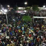 Uma multidão se fez presente na praça principal onde esperavam ansiosos a chegada do desfile e aguardando as grandes atrações para a cerimonia de encerramento.
