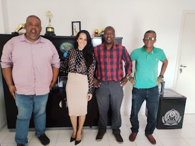 O trio foi recebido pela Diretora de Competições da entidade, Taíse Galvão. No encontro, eles também apresentaram detalhes do Campeonato Cachoeirano 2023.