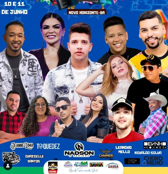 A Prefeitura de Novo Horizonte confirmou nas suas redes sociais a realização de um evento de pré São João como parte do calendário junino de 2023. O evento que será realizado nos dias 10 e 11 de Junho contará com apresentações de Nadson O Ferinha, Cheiro de Milho, Canários do Reino e Pegada Vip no dia 10 de Junho. No dia 11/06 estão previstas apresentações de Devinho Novaes, Jeanne Lima, Jaldo Rodrigues e Toque Dez.