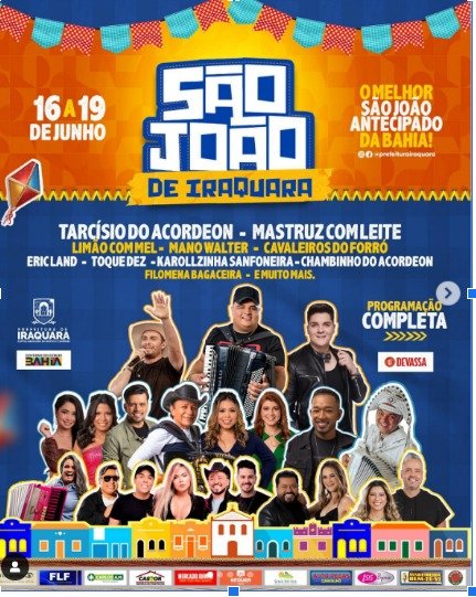 A programação completa do São João de Iraquara 2023 já está disponível. Veja abaixo as atrações confirmadas.