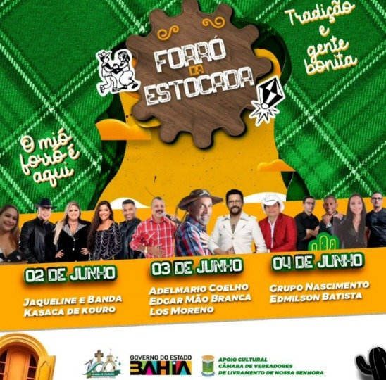 A Prefeitura de Livramento de Nossa Senhora anunciou nas suas redes sociais as atrações do Forró da Estocada. O evento é parte da programação do Festival de Forró 2023 realizado pela Prefeitura Municipal de Livramento de Nossa Senhora em parceria com o Governo do Estado da Bahia através da SUFOTUR.