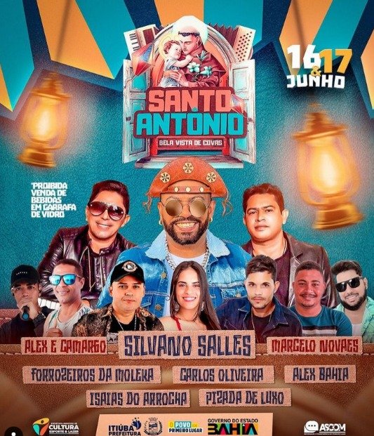 A prefeitura de Itiúba, por meio da Secretaria de Cultura, com o apoio do Governo do Estado da Bahia, através da SUFOTUR, realizará o tradicional festejo de Santo Antônio no Distrito de Bela Vista de Covas. Durante os dias 16 e 17 de junho, Bela Vista de Covas recebe uma programação variada entre shows de diversos artistas com repertórios que vão desde o forró, sertanejo e piseiro.