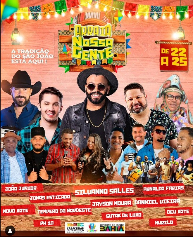 A Prefeitura de Cabaceiras do Paraguaçu confirmou a realização do Arraiá da Nossa Gente 2023. O evento que faz parte dos festejos juninos e será realizado entre os dias 22 a 25 de Junho. A Prefeitura divulgou também a grade de atrações e programação do evento que contará com uma grande estutura. Confira: