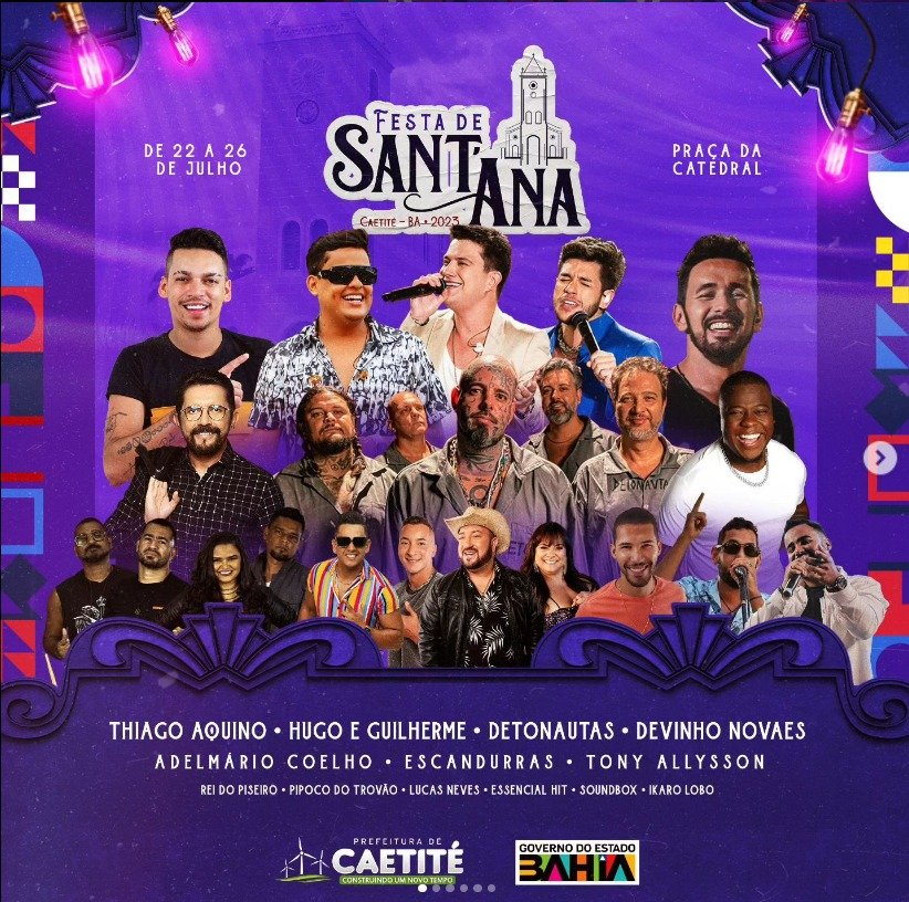 A Prefeitura de Caetité, cidade a 636 km de Salvador, anunciou as atrações da Festa de Sant’Ana 2023 no município.
