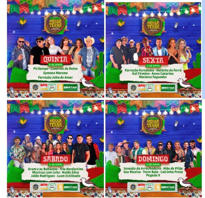 Após anunciar as atrações principais do São João de Ibirataia, nessa terça-feira, 30,05,23 a Prefeitura Municipal anunciou que haverá mais um dia de festa, aumentando assim para 4 dias o período do evento, de 22 à 25 junho 2023.