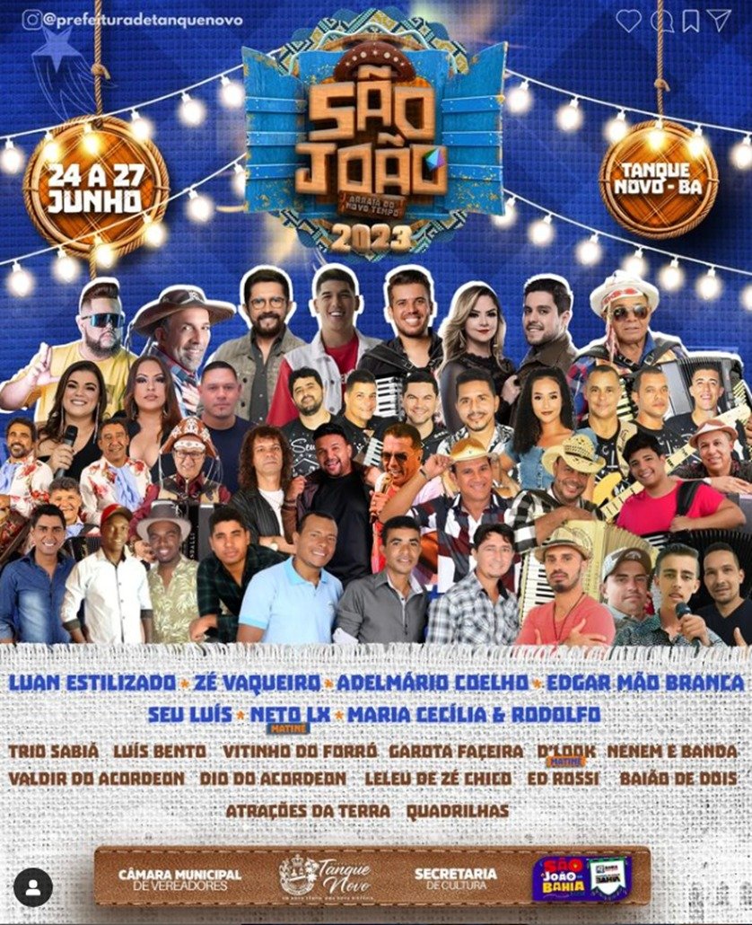 Acontece de 24 a 27/06/2023, os festejos juninos do município de Tanque Novo/BA.