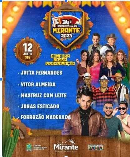 A festa realizada pela Prefeitura Municipal de Mirante contou com o apoio institucional do Governo do Estado da Bahia através da Superintendência de Fomento ao Turismo, SUFOTUR.