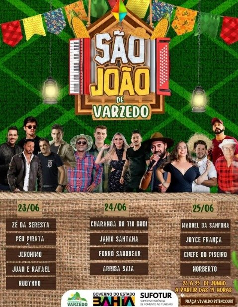 Uma festa preparada com muito carinho para todos os varzedenses e região, pela prefeitura de Varzedo, juntamente com o apoio do Governo do Estado da Bahia através da SUFOTUR, serão três dias de festa com muita música e animação, grandes cantores nacionais e regionais, fiquem com a programação: