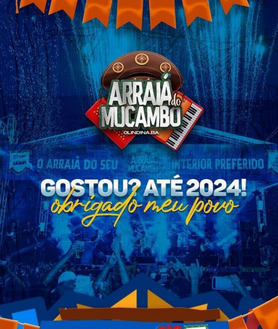 Não era de se esperar outra coisa a não ser o melhor São Pedro de todos os tempos, Olindina entregou e entregou muito, e a sua presença foi essencial para tornar essa festa ainda mais bonita, milhares de pessoas compareceram no Arraiá do Mucambo 2023, no dia 01 de Julho e curtiram pelas ordens das atrações iniciando com Duka Sanfoneiro, David Brasil, Gatinha Manhosa, Iguinho e Lulinha, Batista Lima e Forró do Muído, infelizmente acabou mas, se preparem que 2024 tem mais, foi uma noite incrível.
