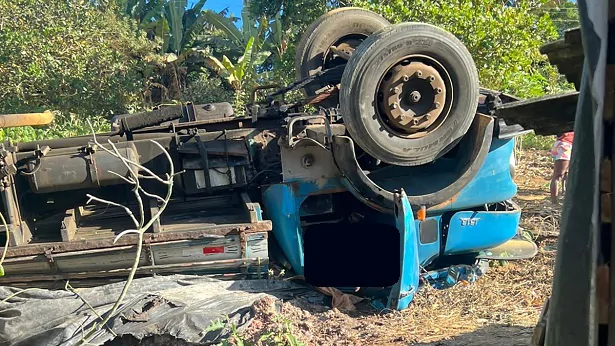 Um caminhão truck capotou em uma ladeira na localidade do Km 53, em Santo Antônio de Jesus (BA), na tarde desta segunda-feira, dia 17. O caminhão, que estava carregado com adubo químico molhado, ficou sem freio após o óleo diesel acabar. Com isso, voltou de ré e capotou. O condutor morreu preso às ferragens.