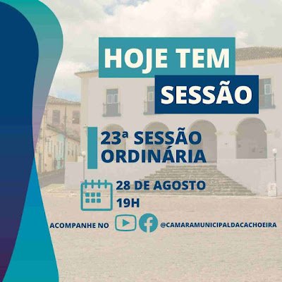 Você também pode acompanhar aonde você estiver por aqui ou através do canal no YouTube e no Facebook da Câmara da Cachoeira.