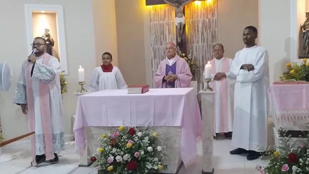 A Celebração Eucarística foi presidida por Dom Juraci que foi calorosamente acolhido pelo Pároco Pe. Nilvandro Oliveira Silva. O padre Valter Menezes Moura, pároco da Paróquia Nossa Senhora de Brotas, em Milagres, e o seminarista Gilson Oliveira da Paróquia Nossa Senhora da Conceição, em Castro Alves, também estiveram no altar ao lado de Dom Juraci participando da celebração.