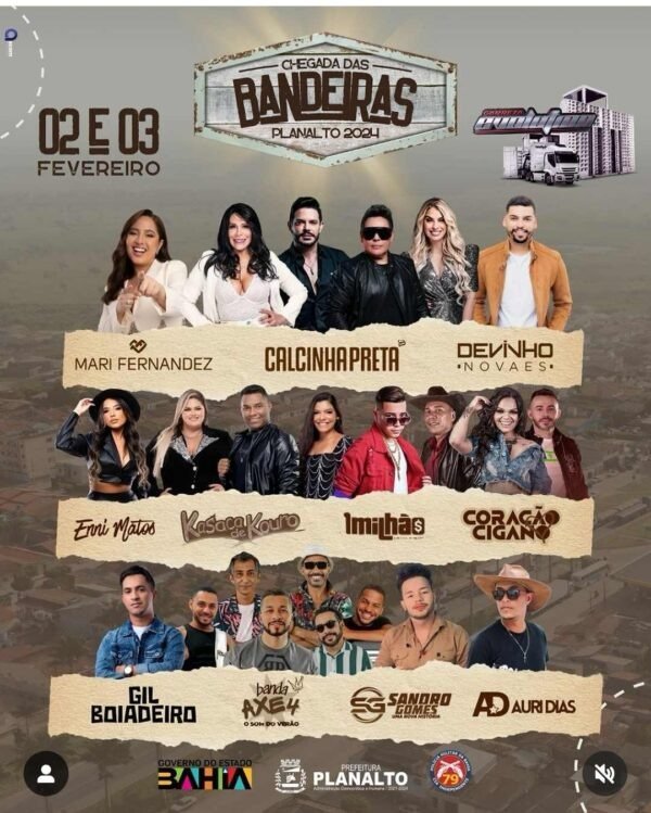 Está chegando o grande dia da Festa da Chegada das Bandeiras, que acontecerá no Município de Planalto/BA nos dias 02 e 03 de Fevereiro de 2024.