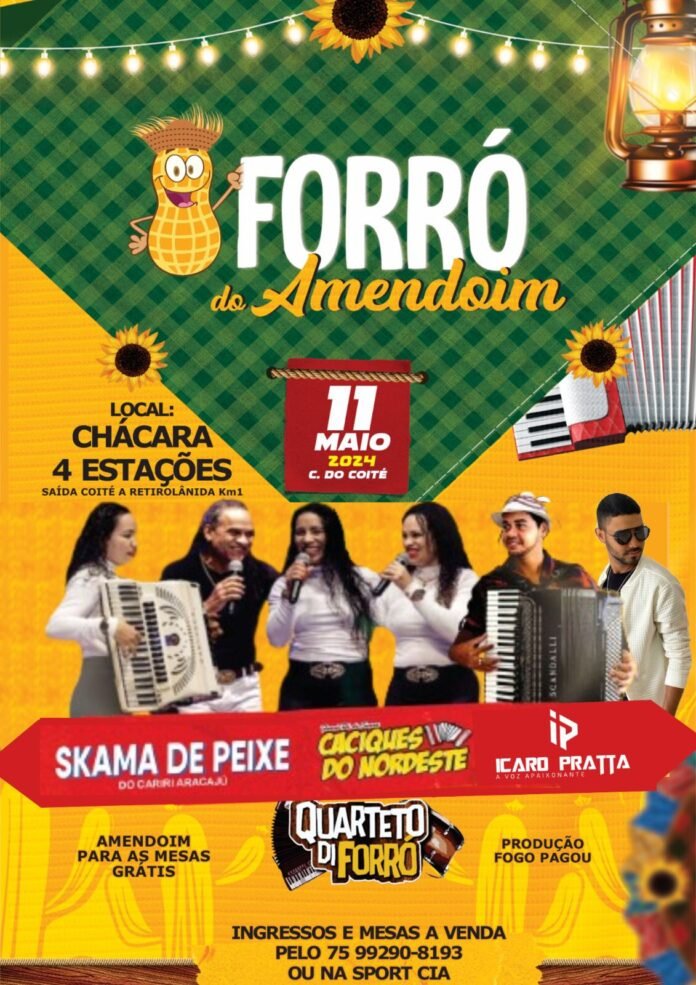 No próximo sábado, dia 11 de maio, a cidade de Coité e região será palco do tão aguardado evento “Forró do Amendoim”, que promete uma noite de muita música e animação. O destaque da noite fica por conta da presença do talentoso Ícaro Pratta, conhecido por sua voz apaixonante e sucesso na música baiana.