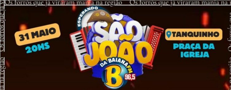 A Prefeitura Municipal de Tanquinho juntamente com o Governo do Estado da Bahia, através da SUFOTUR realizará um São João antecipado, no dia 31 de maio de 2024 o evento que já é muito aguardado por todos, se prepara para receber visitantes de toda a região, através da redes sociais a prefeitura confirmou a primeira atração, o forrozeiro baiano, Adelmário Coelho.