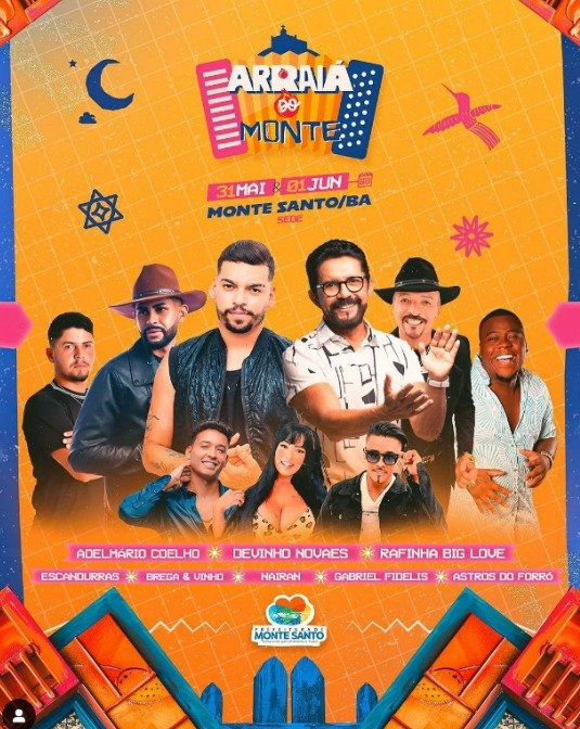 Prepare-se, porque vem aí o Arraiá do Monte 2024, realizado pela Prefeitura Municipal de Monte Santo, juntamente com a SUFOTUR, a programação deste ano está imperdível, serão dois dias de festa, confira: