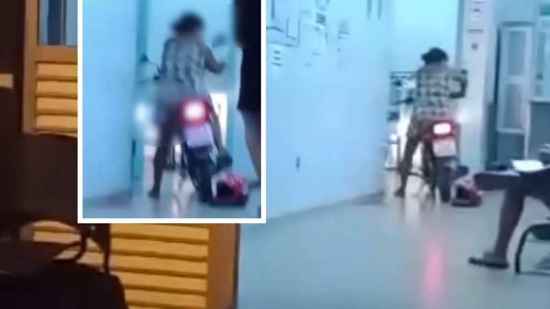 A mulher, que é paciente do Centro de Atenção Psicossocial (CAPS), chegou ao local pilotando uma moto de cor branca. Ela recebeu atendimento médico e ficou sob os cuidados da filha.