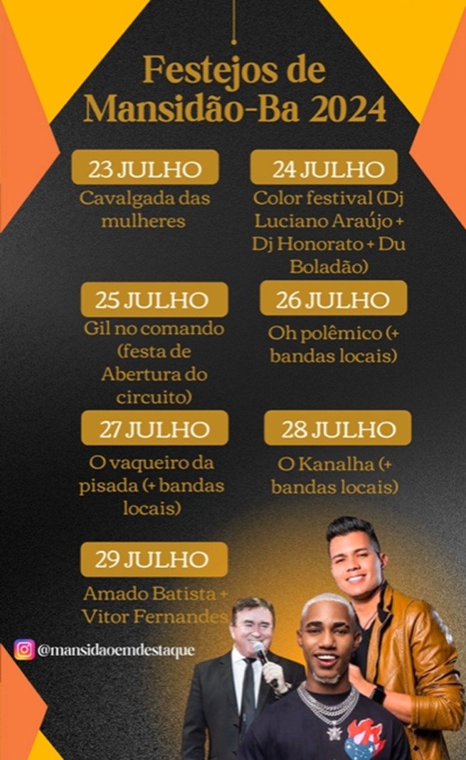 Arena mix (Festa Fechada). - 27 de julho: O Vaqueiro da Pisada (+ bandas Locais).