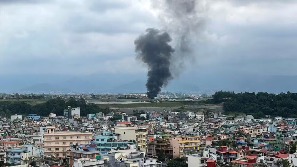 Bombardier CRJ-200 cai logo após a decolagem no Nepal — Foto: Reprodução/Reuters
