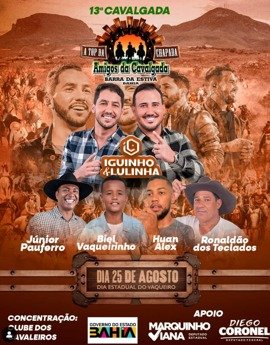 A festa acontecerá no dia 25 de agosto de 2024, em Barra da Estiva, e promete atrair uma multidão de admiradores da cavalgada e da cultura sertaneja. A Cavalgada Amigos da Cavalgada, que completa 15 anos, já se tornou uma tradição na cidade, celebrando não apenas a prática da cavalgada, mas também a união e o espírito comunitário.